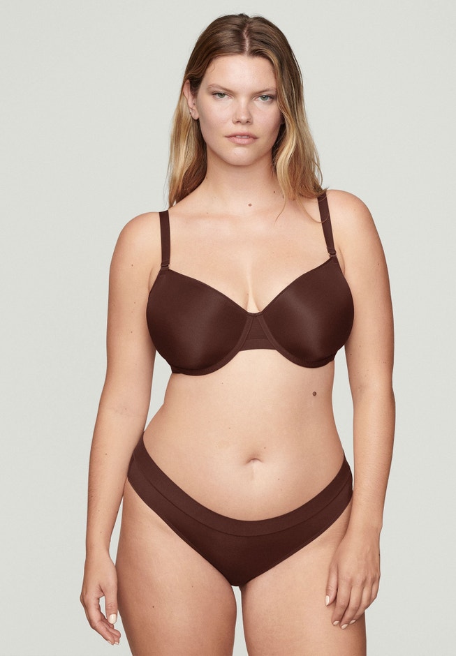 The Demi is our modern take on the everyday t-shirt bra. An elegant neckline and soft, supportive cups molded from 3D spacer fabric provide non-creasing, smoothing coverage without any padding or foam.